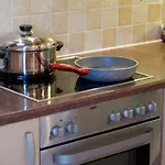 Σ' αυτό τοδιαμέρισμα υπάρχει εξοπλισμένη μικρή κουζίνα με ηλεκτρικό βραστήρα, φούρνο και μαγειρικά σκεύη.